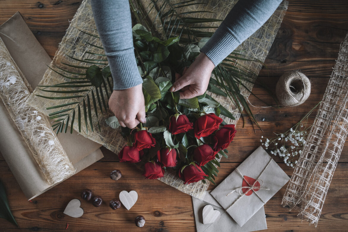 Les fleurs jouent un rôle essentiel dans la décoration. Optez pour un bouquet de roses rouges, symbole intemporel de l’amour, ou pour des fleurs plus délicates comme des pivoines, des lys ou des orchidées. Vous pouvez également parsemer la table de petits bouquets faits maison dans des vases assortis, ou encore créer une couronne de fleurs séchées à accrocher en guise de décoration murale.
