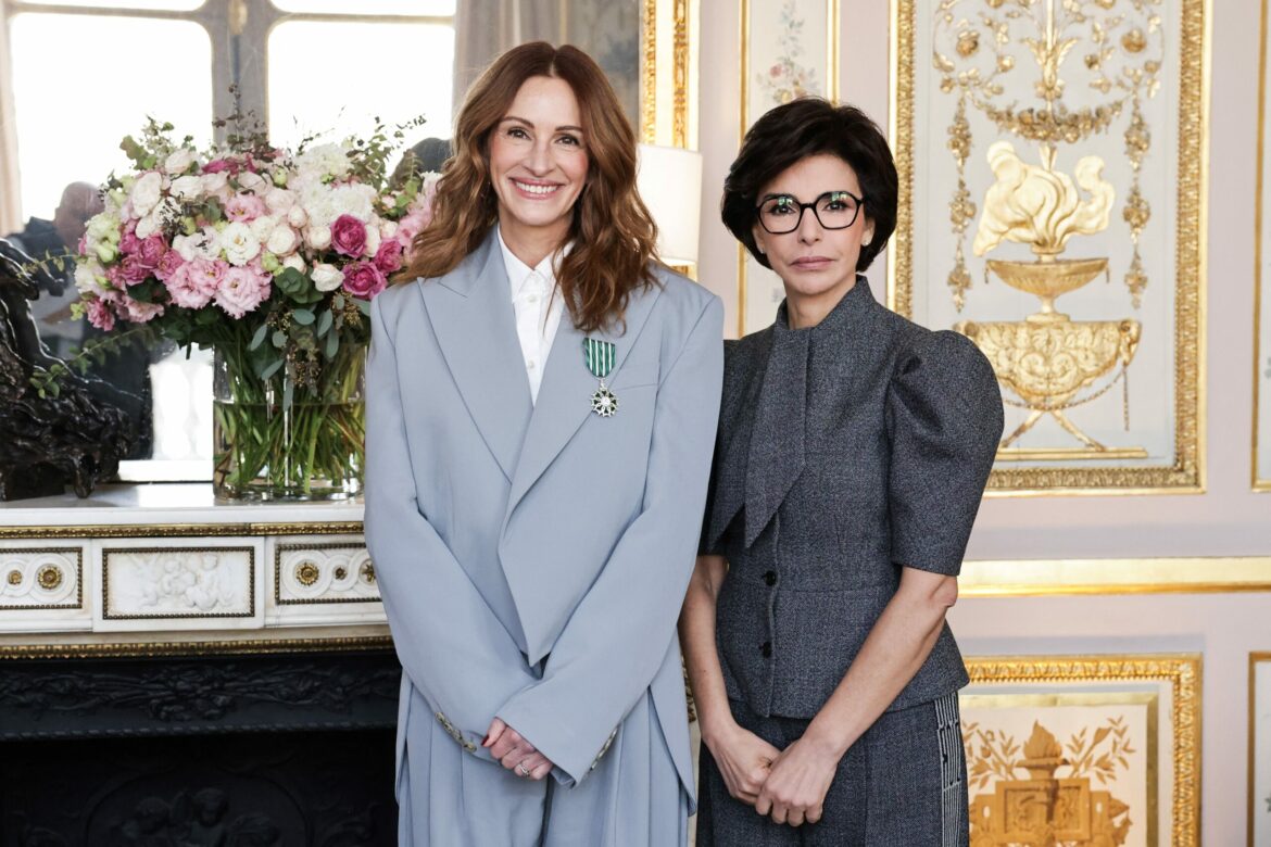 Invitée d’honneur, Julia Roberts a été l’une des grandes vedettes de la soirée. L’actrice américaine, récompensée d’un César d’honneur pour l’ensemble de sa carrière, a opté pour un ensemble fluide signé Phoebe Philo. Elle portait une tunique asymétrique et un pantalon ample, alliant la simplicité du classique à une élégance incontestable. Ce choix de tenue, à la fois minimaliste et raffiné, témoignait de son statut d’icône intemporelle, toujours aussi sublime et majestueuse sur le tapis rouge.