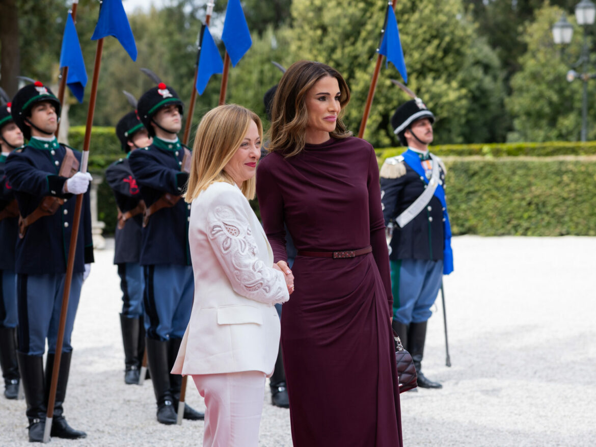 Lors d’une brève visite en Italie ce mercredi, Sa Majesté la Reine Rania de Jordanie a été reçue par la Première ministre Giorgia Meloni à la Villa Doria Pamphili à Rome.