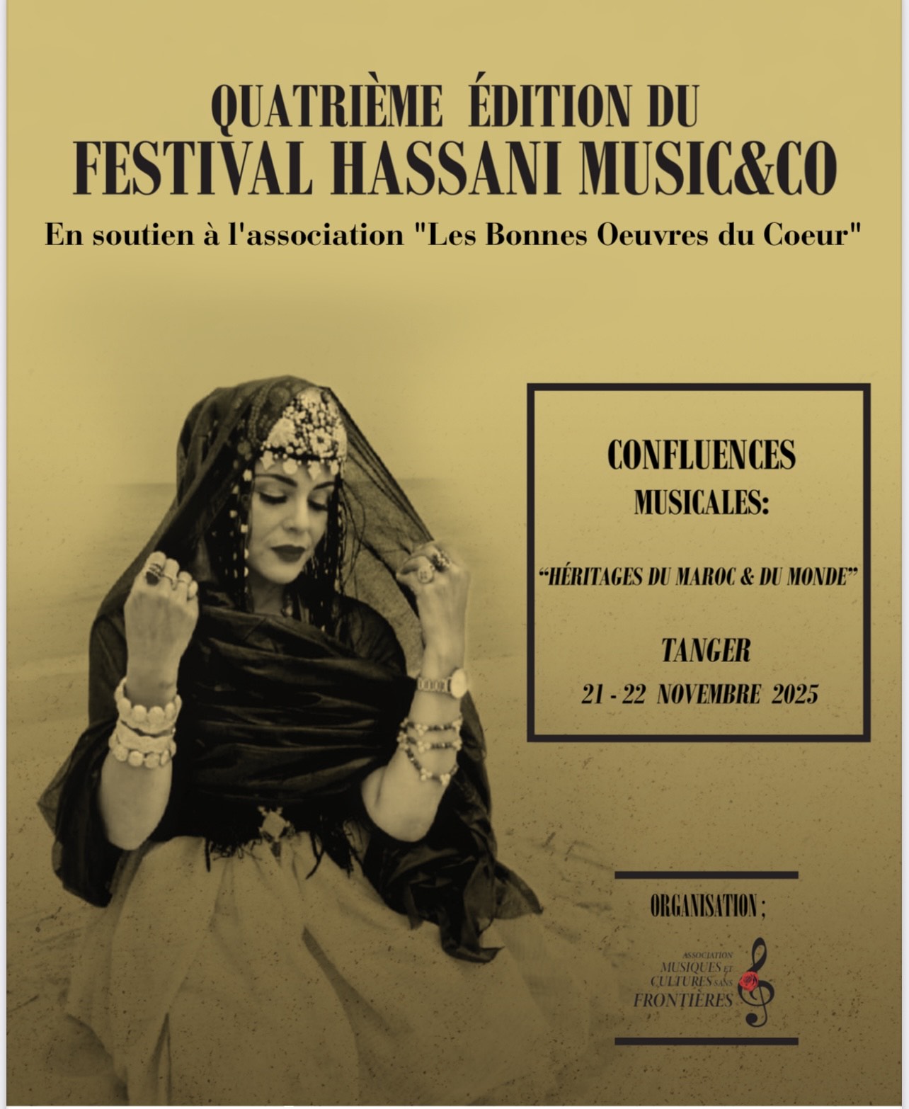 Tanger – Terre mythique, carrefour des cultures et symbole d’ouverture, Tanger s’apprête à vibrer au rythme des sonorités du Sahara marocain et des musiques du monde. À l’occasion du 50ᵉ anniversaire de la Marche Verte, l’association Musiques et Cultures sans Frontières organise, les 21 et 22 novembre 2025, la quatrième édition du Festival Hassani Music&Co, placée sous le thème :